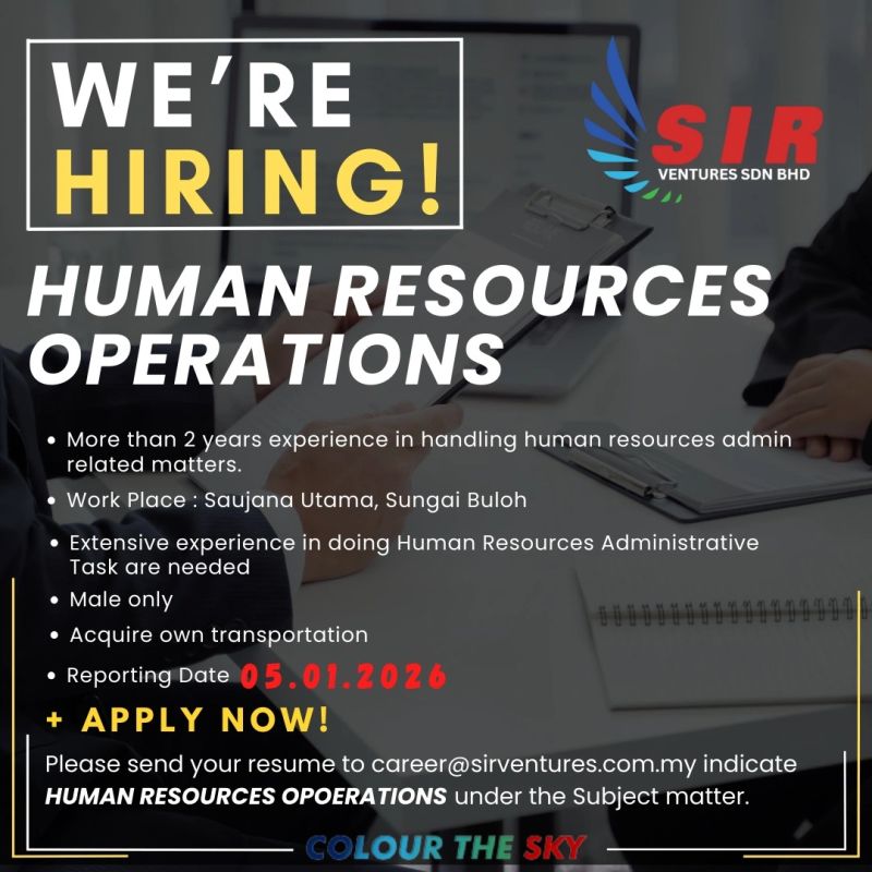 Vacancies at SIR Ventures Sdn Bhd